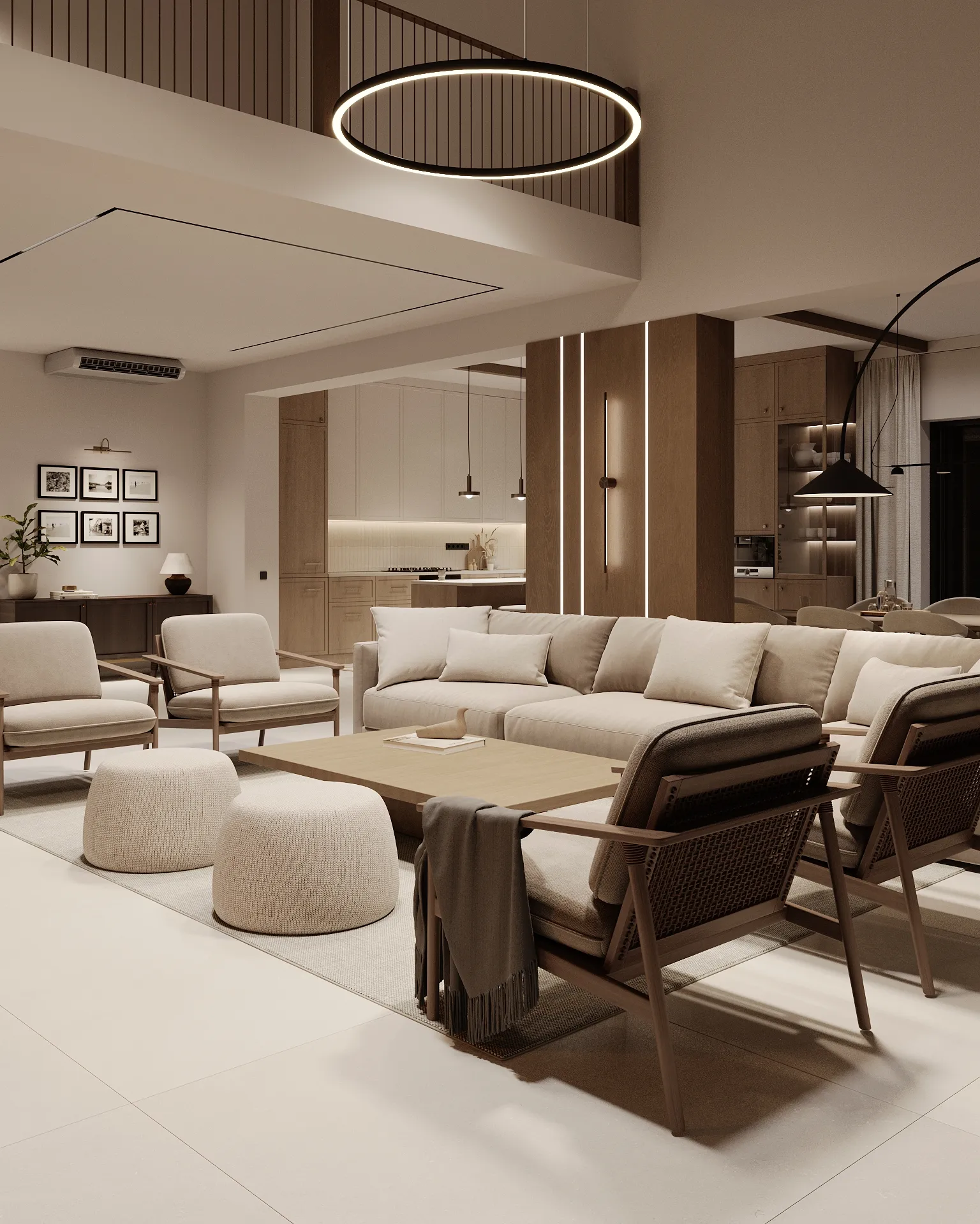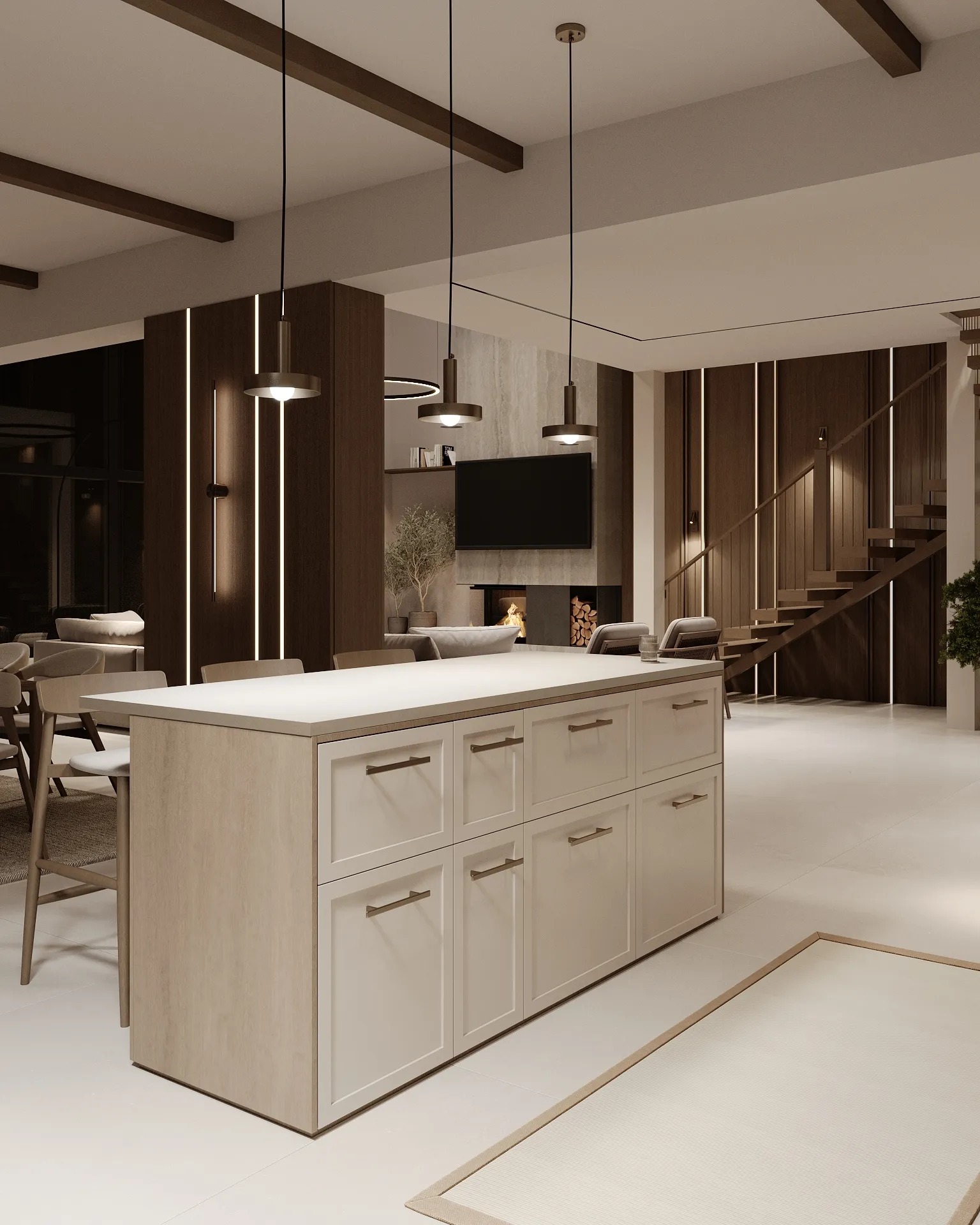 та гостей: велика вітальня, кухня з островом і простора обідня зона.